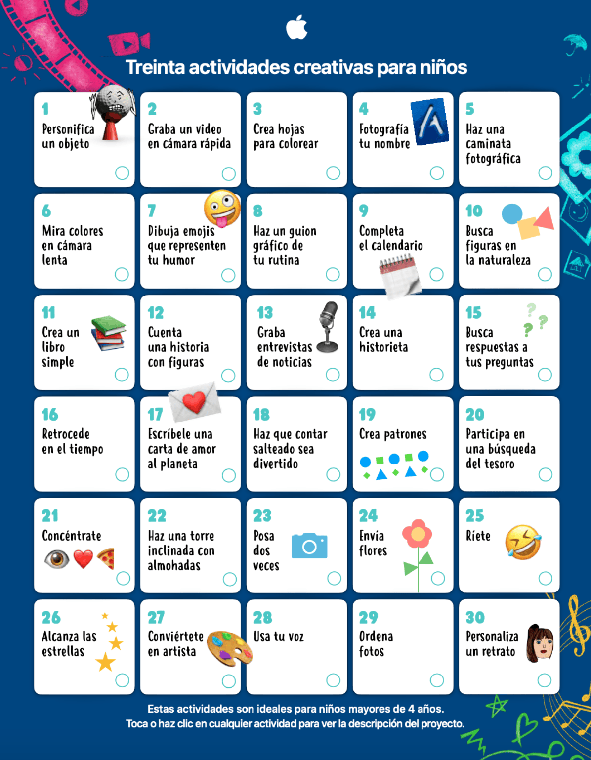 Pon en práctica estas 30 actividades divertidas y creativas que puedes realizar con los niños por medio de las funciones integradas del iPad.