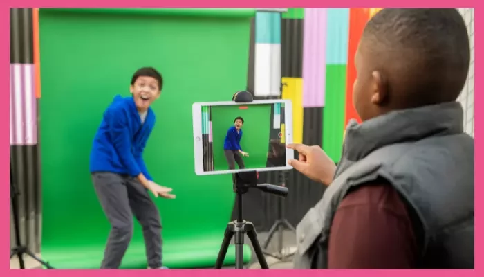Una manera que hace lucir el trabajo de los estudiantes muy profesional, es usando pantalla verde, donde con videos que ya existen podrían simular ser corresponsales y estar transmitiendo en vivo.